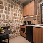 Společně s soukromou koupelnou apartmán má také kompletní kuchyni pro vlastní stravování.